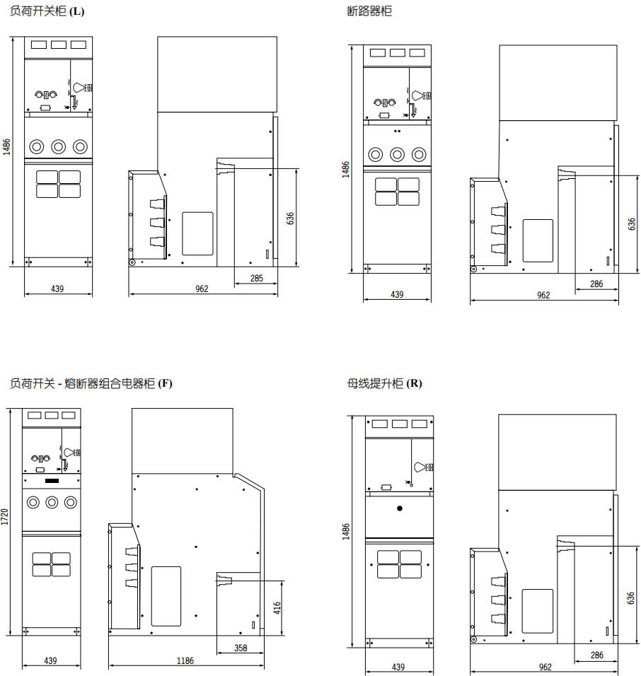 注:1、負(fù)荷開關(guān)-熔斷器組合電器單元的額定電流取決于熔斷器。